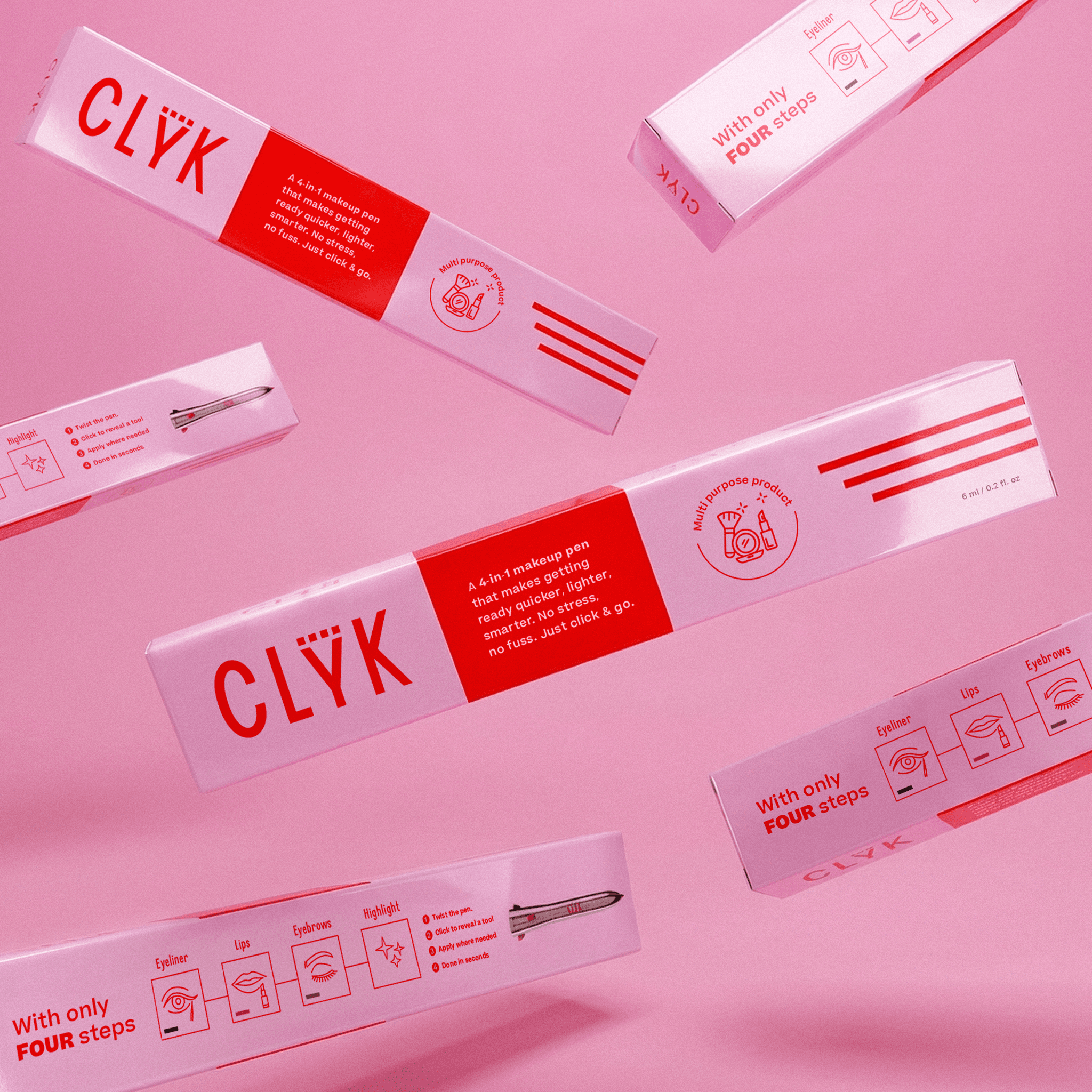 CLYK is a 4-in-1 pen designed to simplify beauty for a generation that multitasks. Lips, eyes, brows, and highlight, all in one tool.