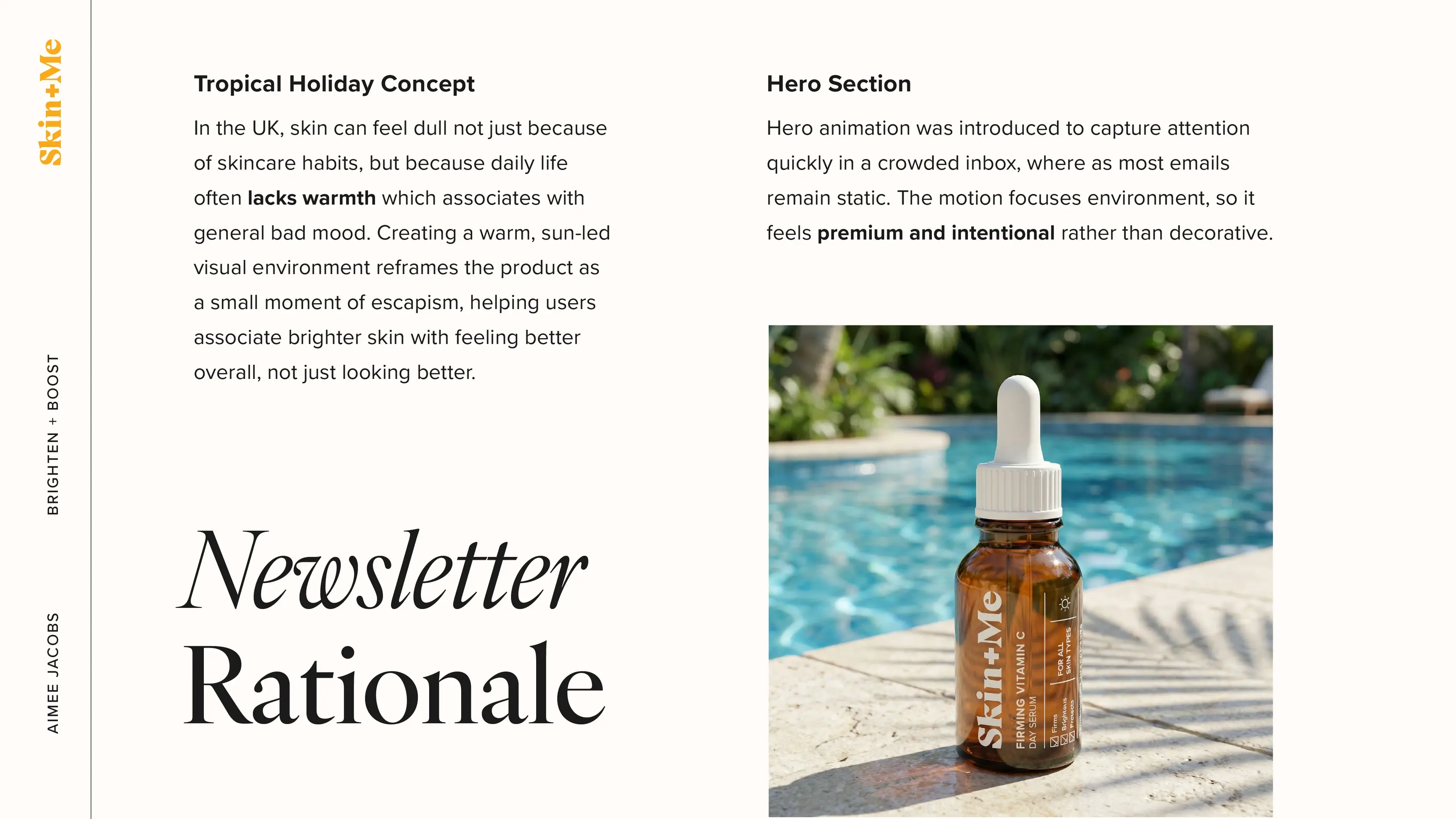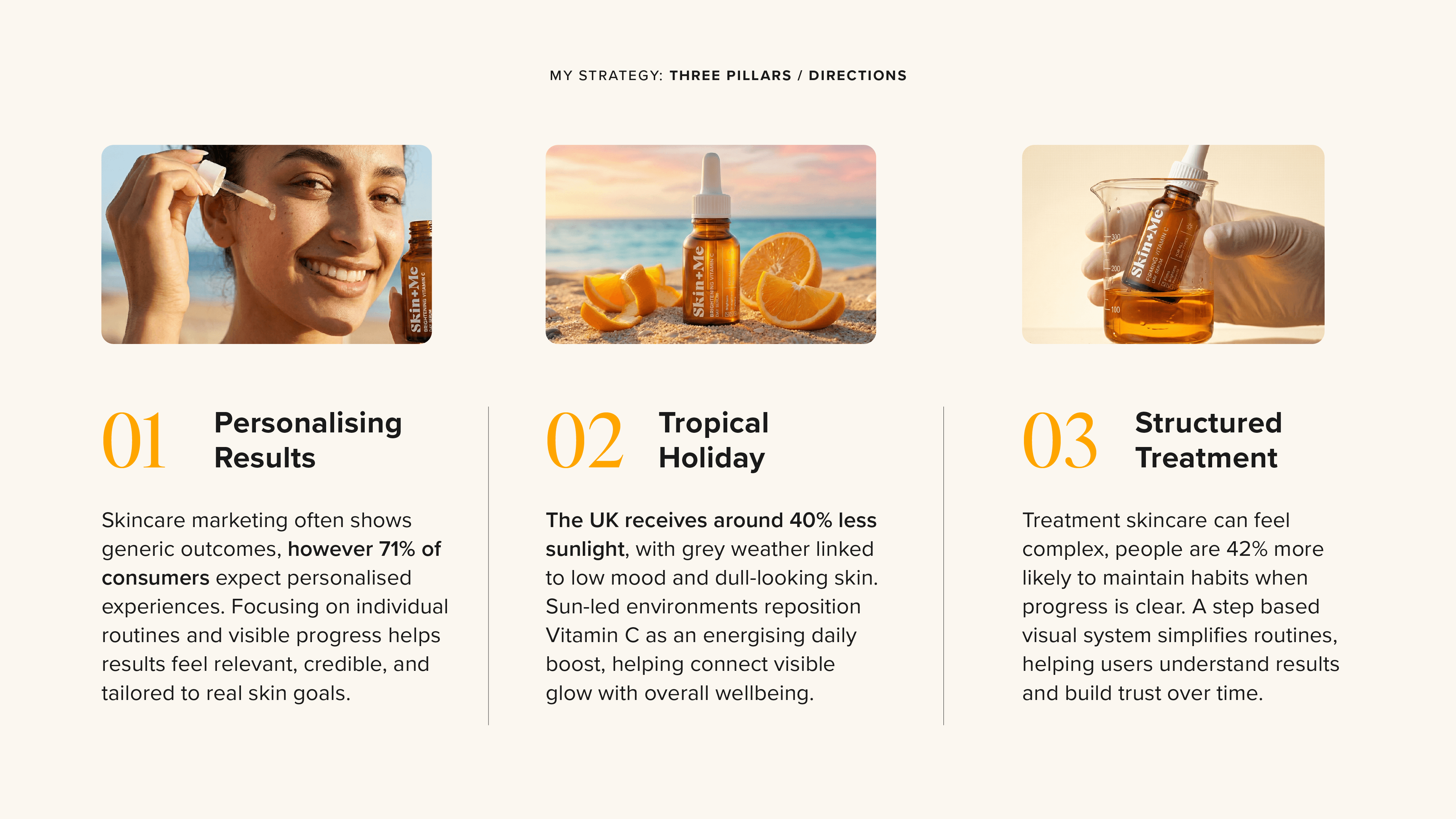 Led the project end-to-end, from strategy and concept through to design and delivery. Brand identity and product packaging were pre-existing assets provided by Skin + Me.