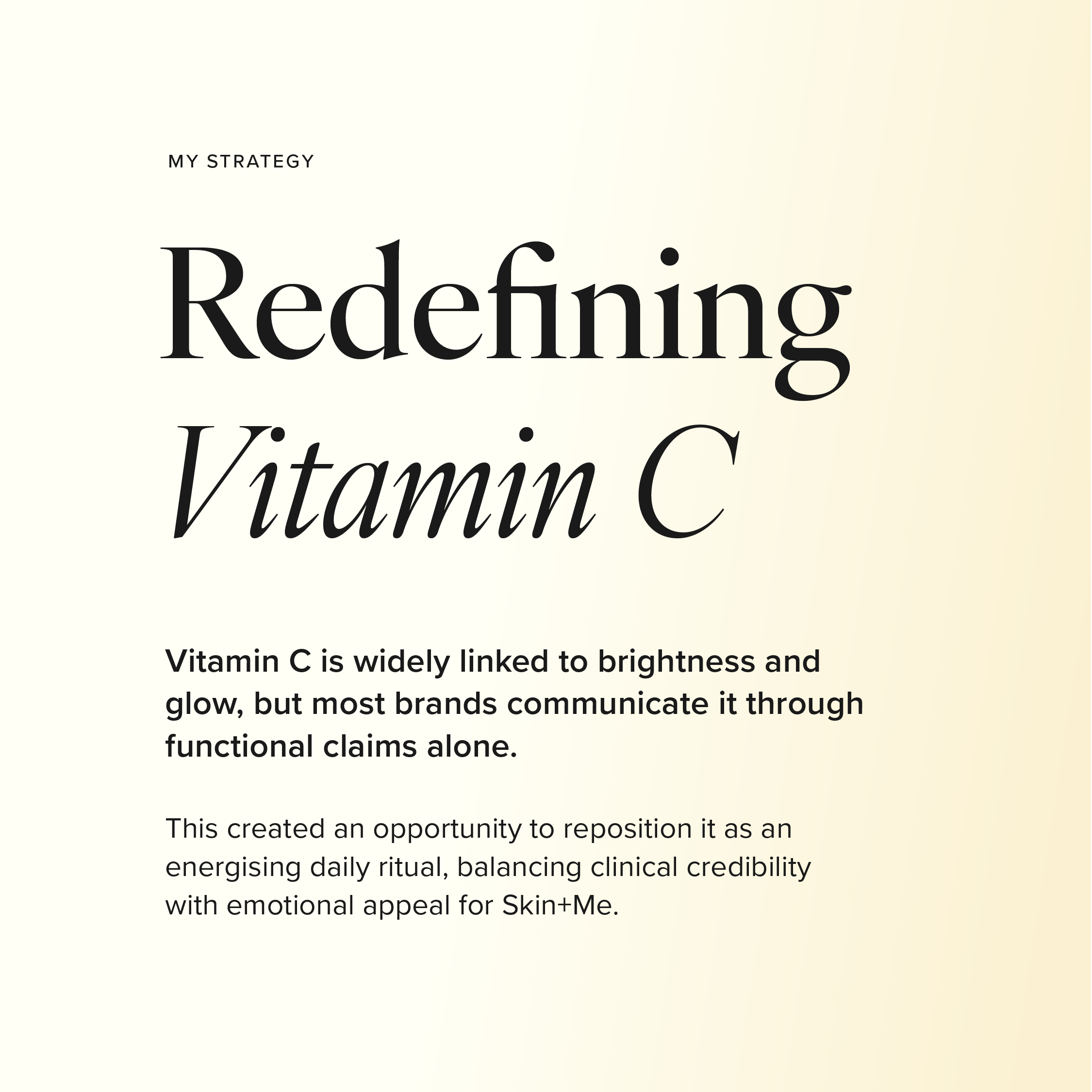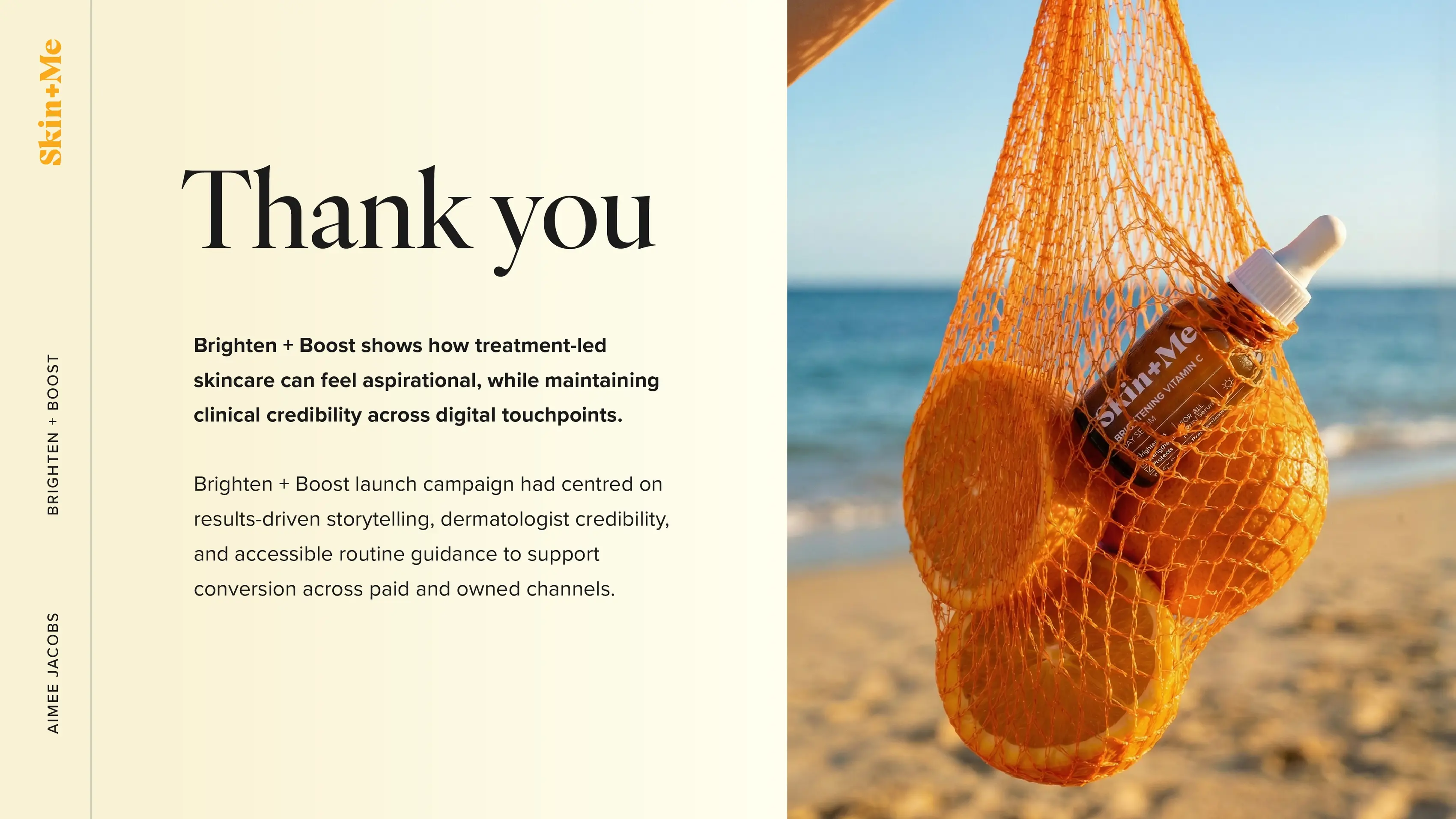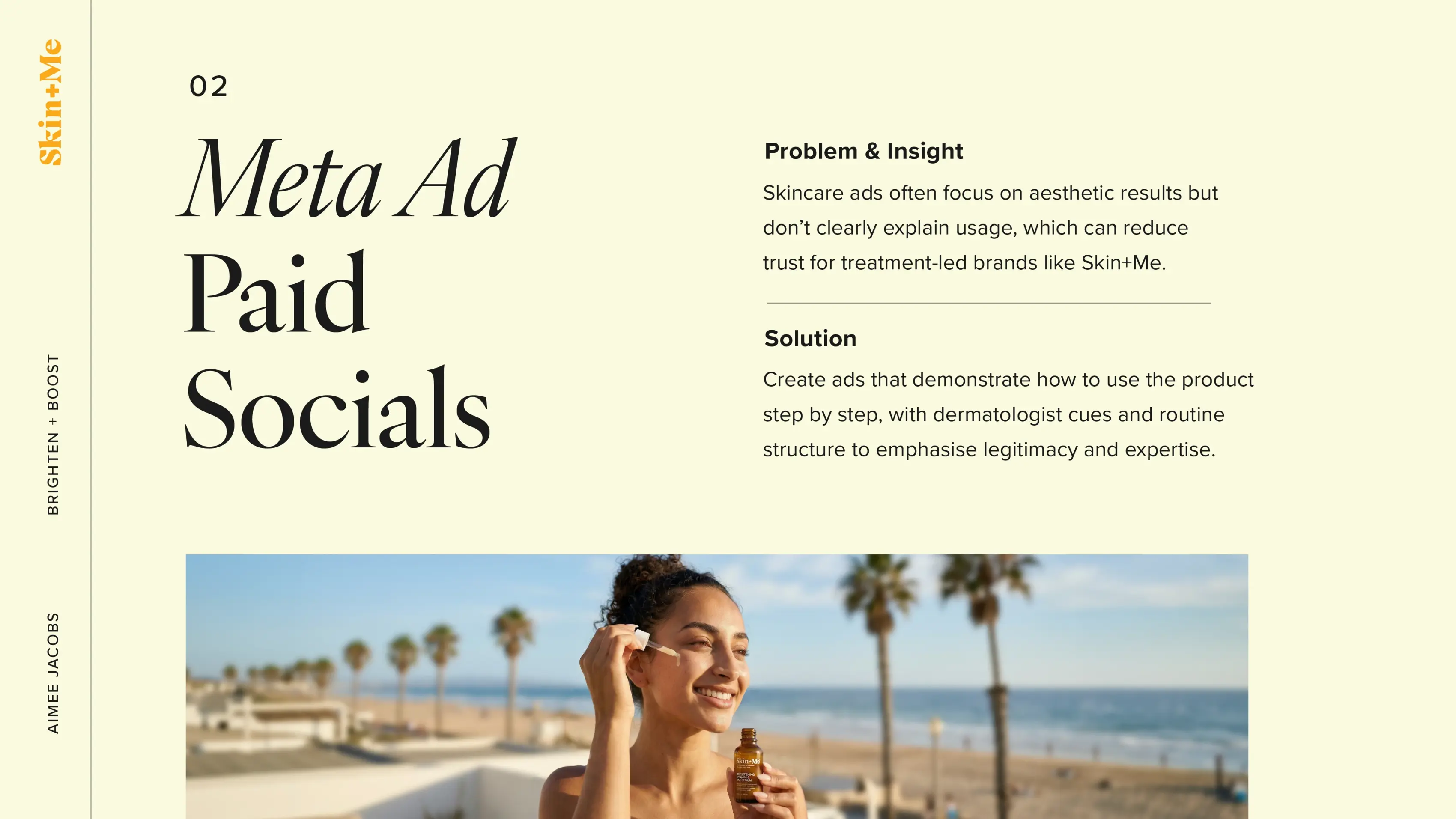 The restrained design helps the visuals and ideas lead, while subtle clinical cues keep it aligned with Skin+Me’s treatment-led positioning. Overall, it balances aspiration with credibility so the work feels both elevated and commercially grounded.